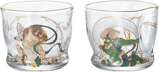 Aderia Glassware Set Of 2 Wind God And Thunder God Fujin Raijin Made In Japan 10 1 Fl Oz Amazon Co Uk Kitchen Home